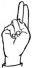 На ћирилици написано КЛАУДИЈЕ КАРИЋ састоји се из 13 слова [?]. Исписано ћириличном једноручном азбуком за глувонеме: